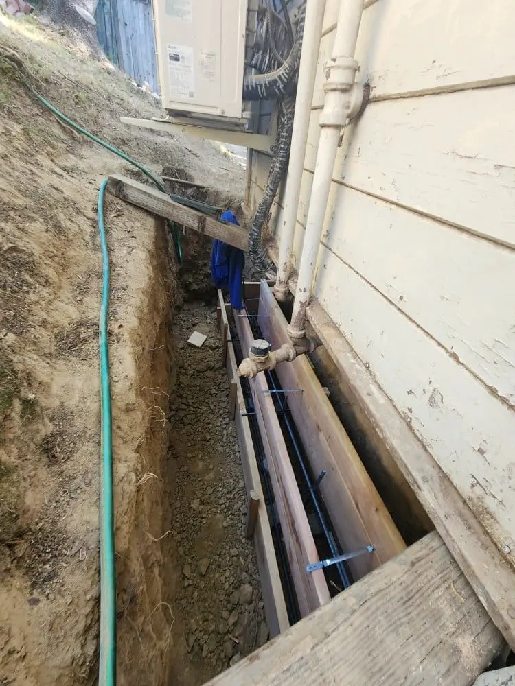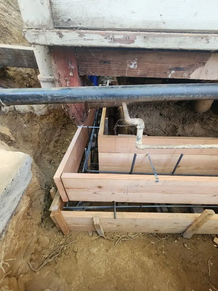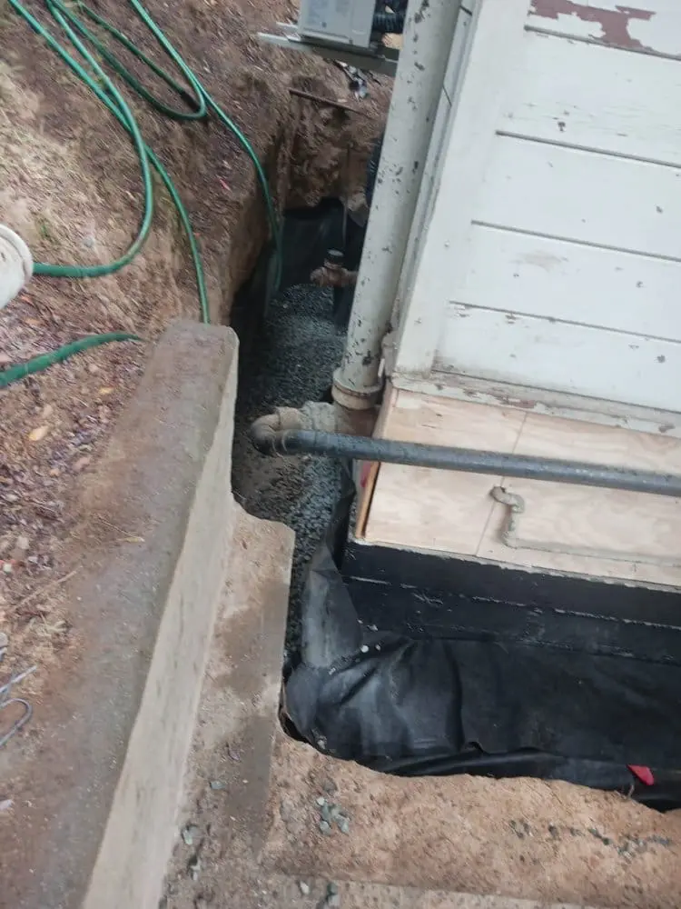 During this project, we replaced the foundation at the rear of the house and installed a French drain system with waterproofing.